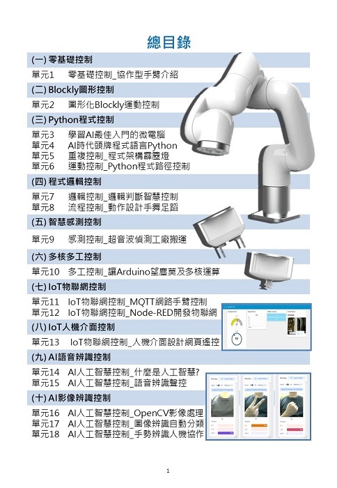 從基礎手臂控制、感測應用、IoT、AI專題...一步步帶你玩出協作手臂新境界。