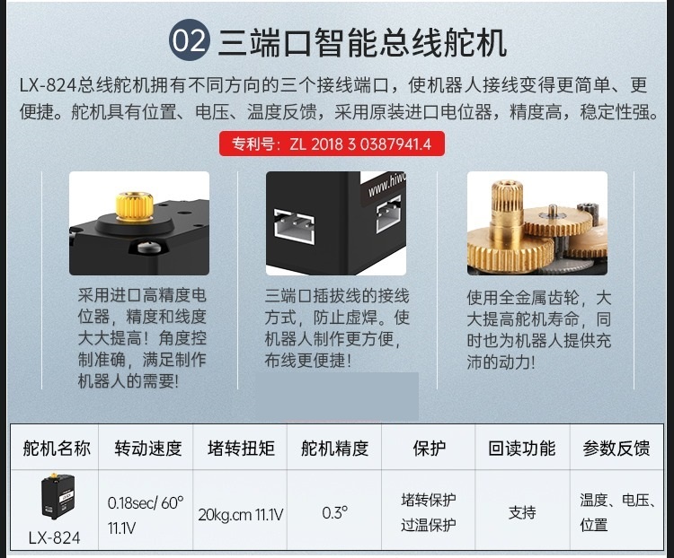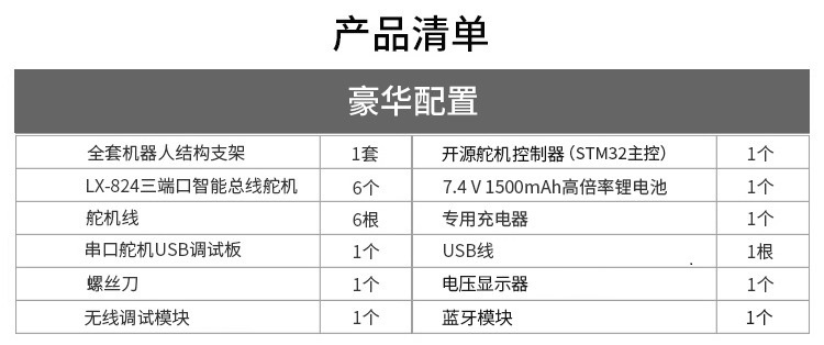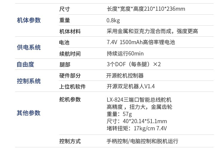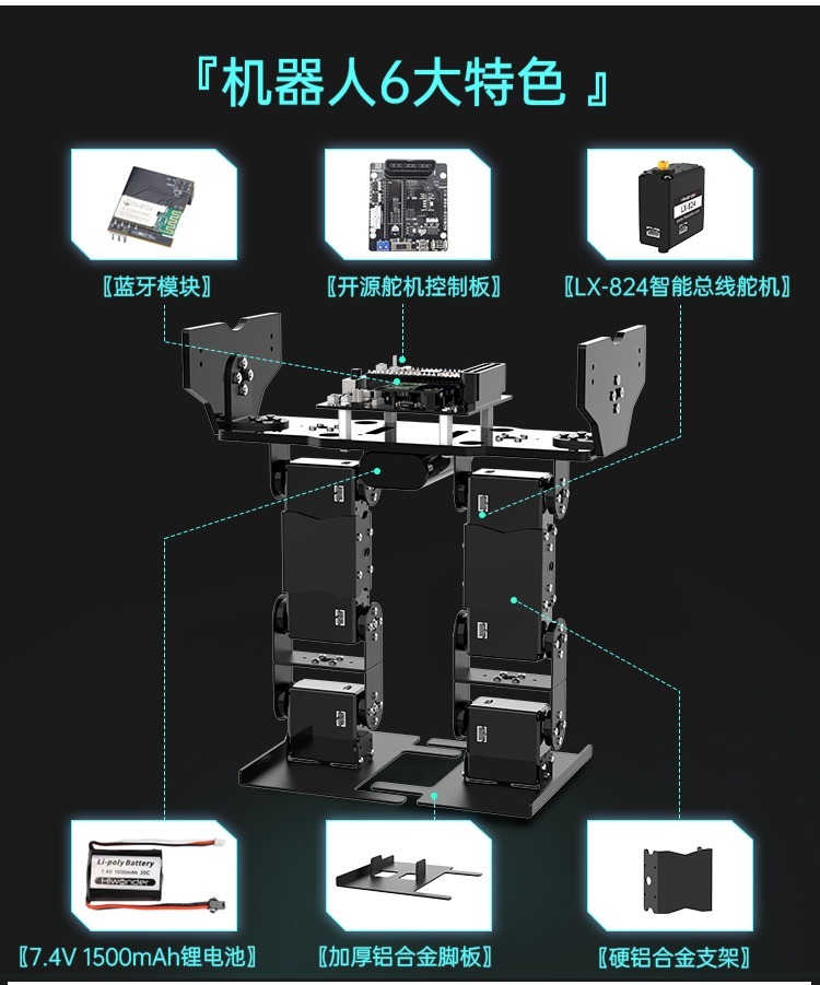 LS-6B 開源叉足雙足機器人以STM32單晶片為主控,搭載高精度串列伺服馬達,擁有