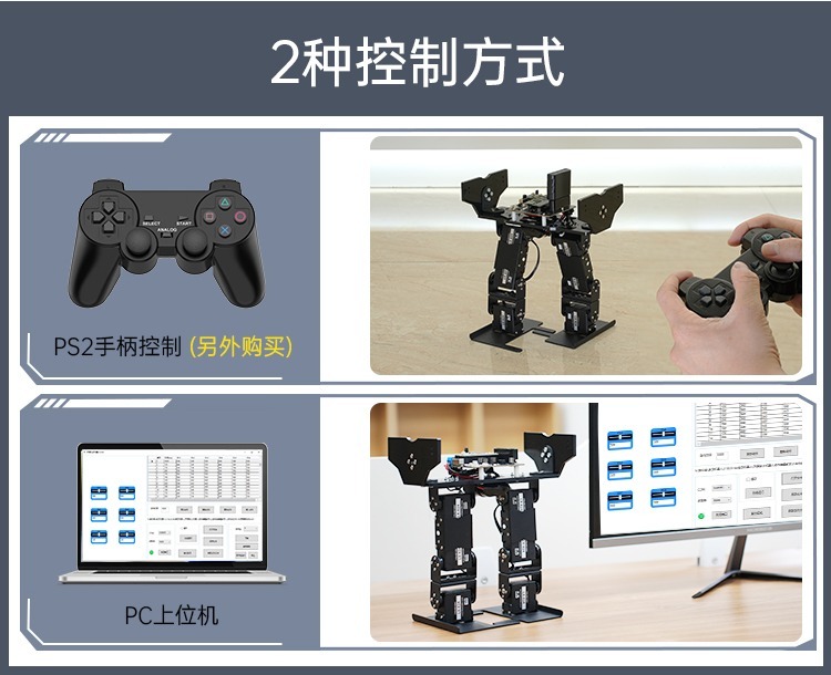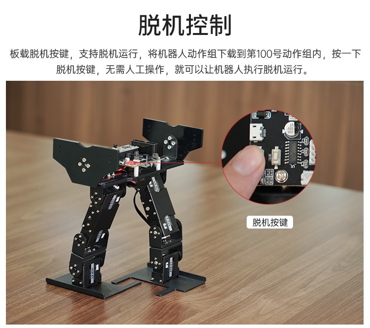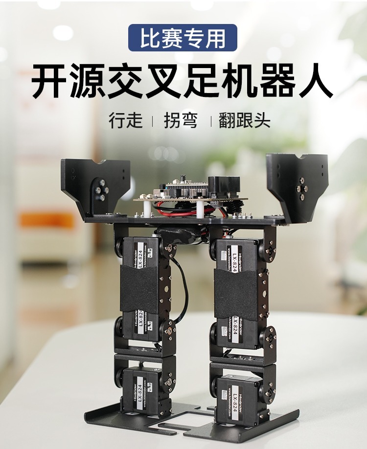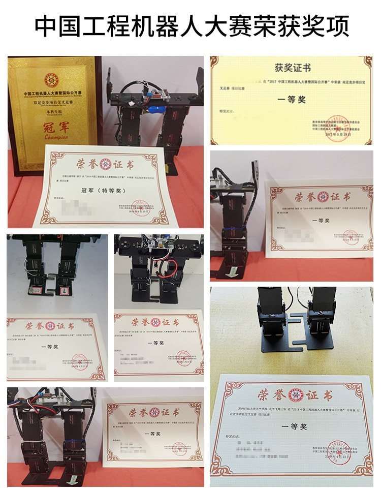 6個自由度,可完成中國工程機器人大賽中竟步專案裡的行走、轉彎、翻跟頭等