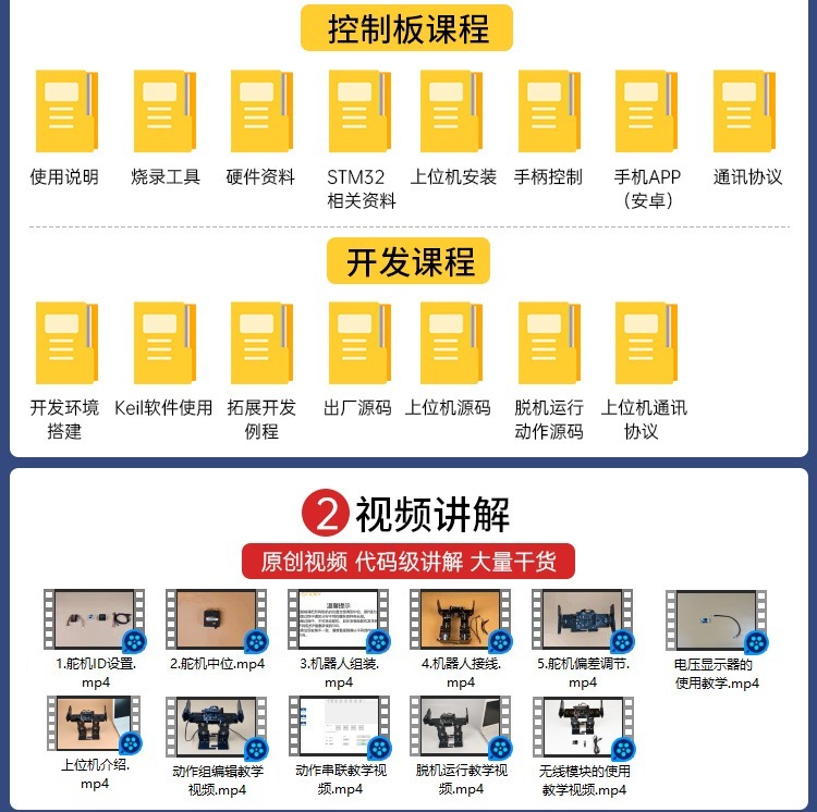 動作。 我們提供多個動作組文件開發原始碼、原理圖等大量學習資料,支援自