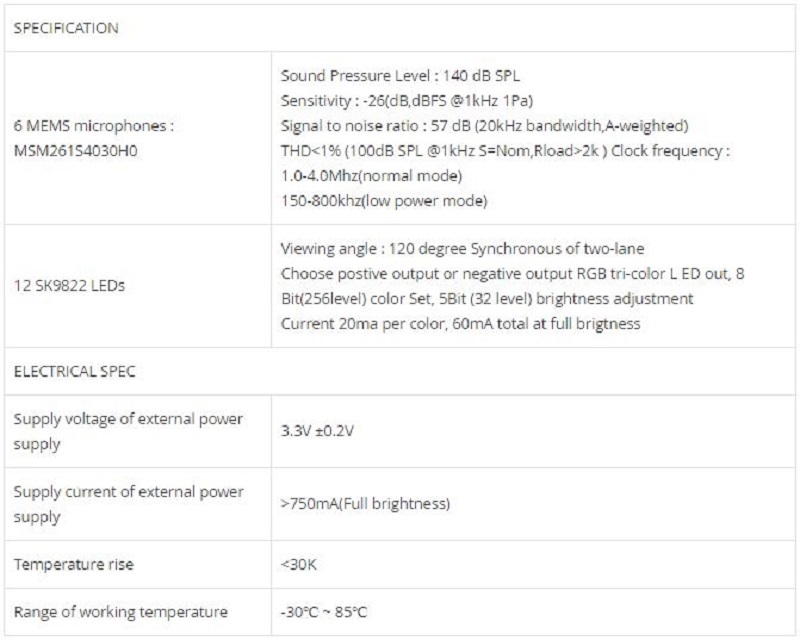Including 6+1 digital microphones, 12 three-color LEDs, it supports sound localization, beam forming, speech recognition etc.