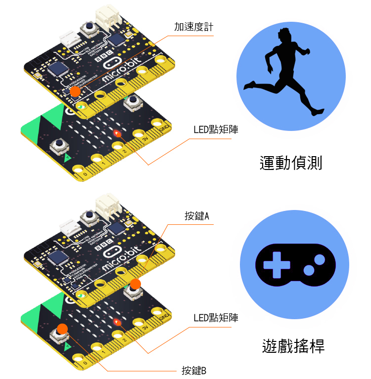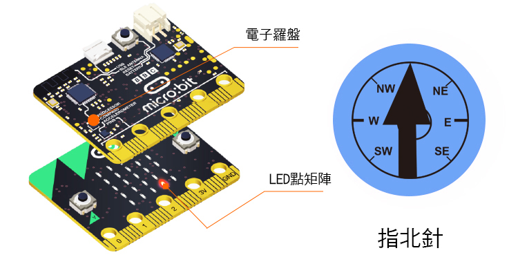 micro:bit甚至可以檢測到運動,並告訴你你要朝哪個方向前進。