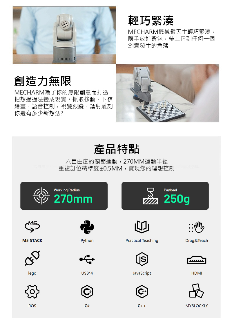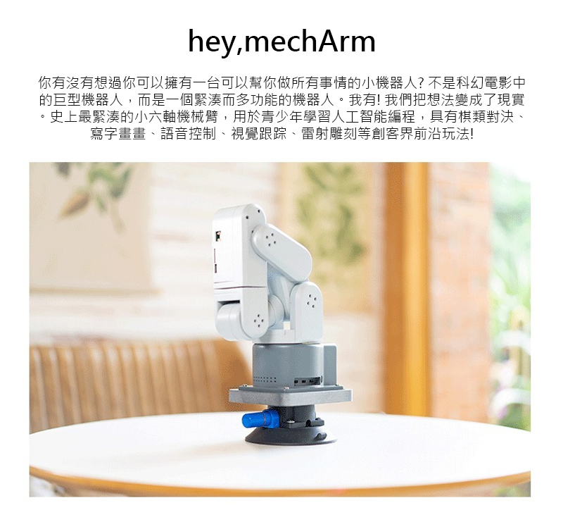 人人都可以玩、用、學的入門級機械手臂,提供可視化程式編輯,即使是初學者也可以輕鬆上手!