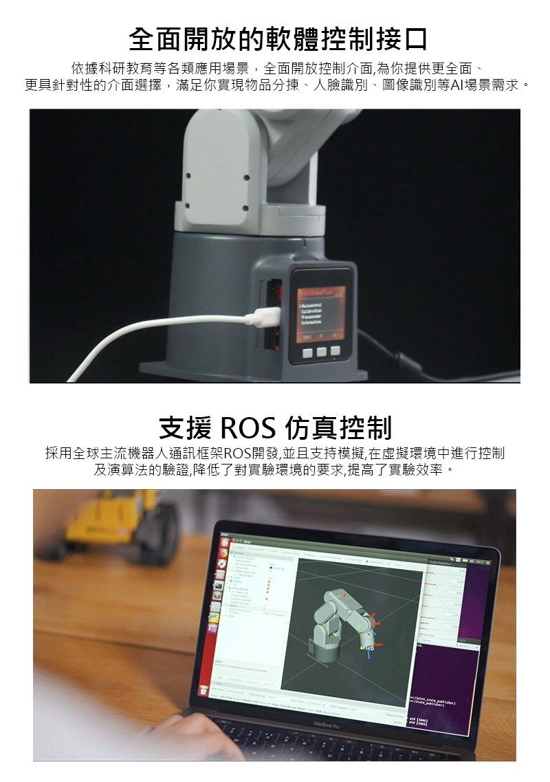 對於想進階應用,支援多平臺軟體的二次開發:Arduino、C++、C#、Python和ROS/RO2等開放式的程式編輯,