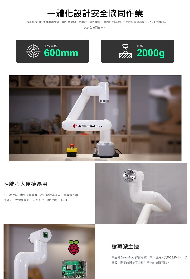 myCobot Pro 600 六軸機械手臂是一款適合教學研究與商用展示的一體式輕量協作型手臂。