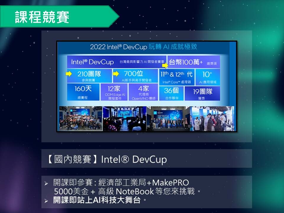 ★【國內外競賽】:除專題、國內競賽,還有機會參與intel國際競賽,展現自我、接軌國際。