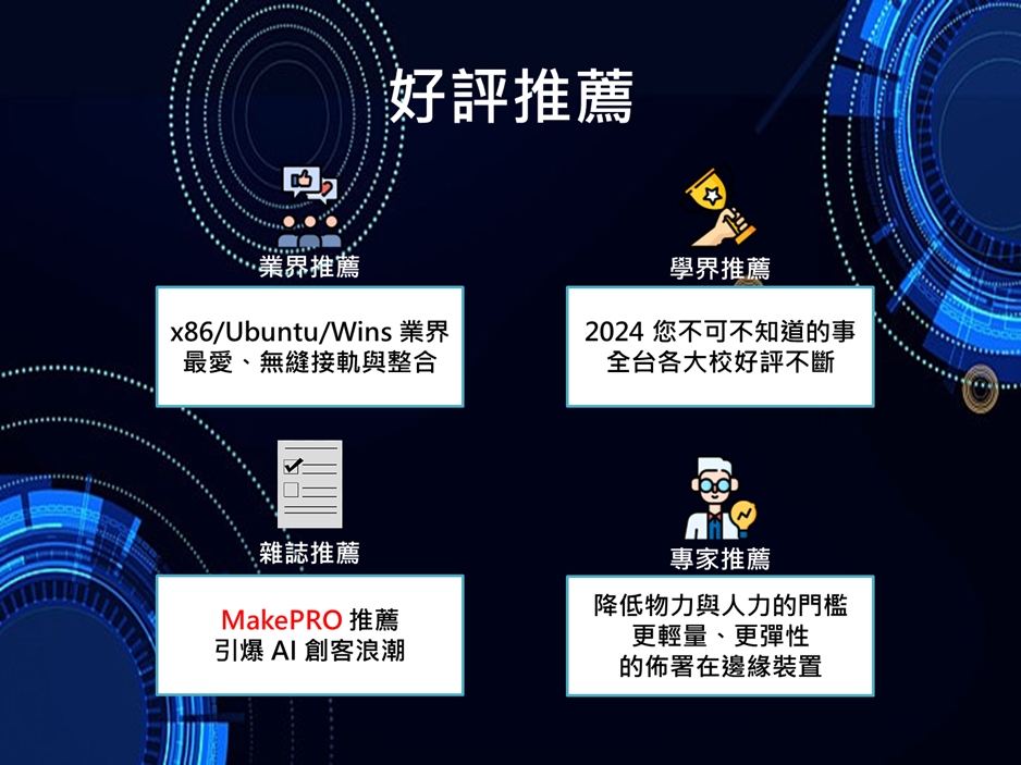 ★【完整素養】:透過採樣、標記、訓練後的AI自訓練模型,加以優化,輕鬆部署在x86上執行。