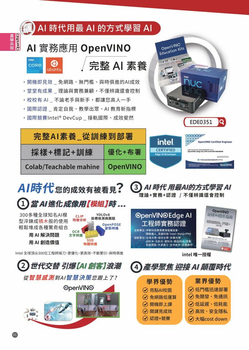 ★【OpenVINO AI實務認證】:不是玩玩,是培養與確認,具備以AI解決問題的實務能力。