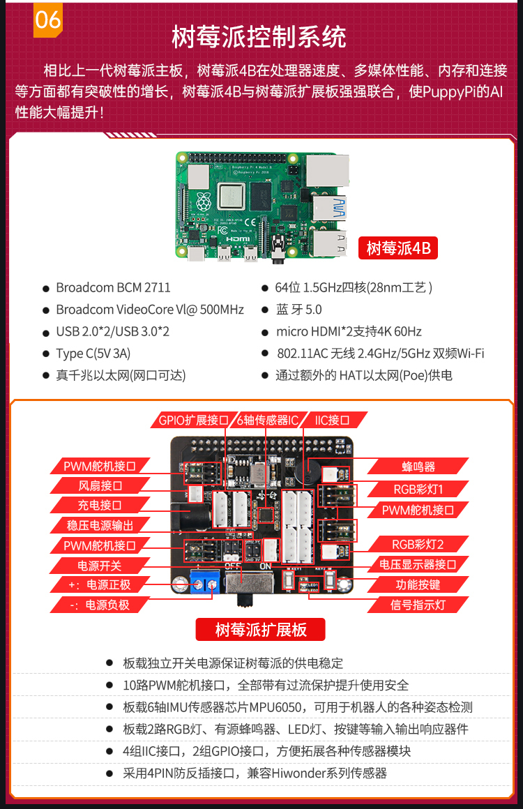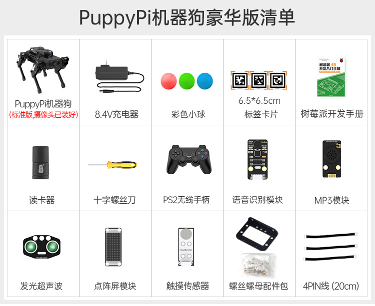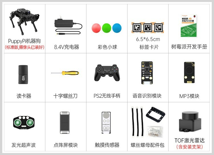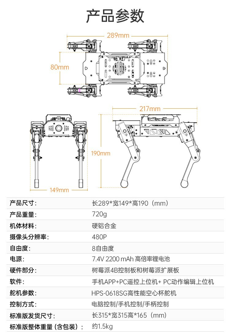 這是一款以樹莓派4B為核心開發的AI視覺四足機器狗。