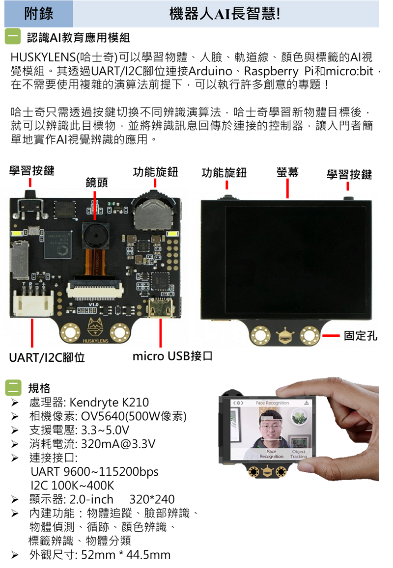 推薦理由:1. 台大AI嘉年華指定課程,讓您直取台大。2. PBL專題式教學,成果明確,引導學習動機3. 無門檻AI教學輕鬆做到人臉..等6種AI辨識功能4. 按圖施工保證成功,含完整說明、步驟與程式5. 台灣海島設計,防潮、防霉、環保友善教材6. 千變萬化3D立體積木,自由組合、收納方便7. 好拆好組,造型多變,結構穩固8. 非一次性使用,可重複拆組9. 售後諮詢服務