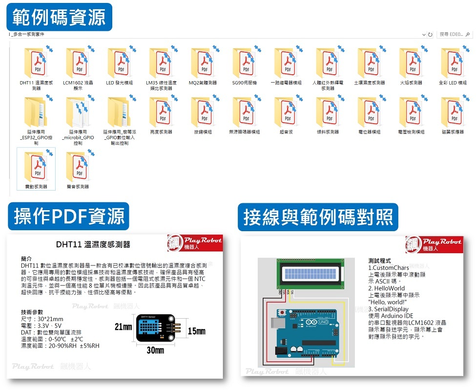飆機器人提供完整的感測模組、防潮收納盒與範例電子檔案,清楚的接線圖與範例對照,幫您加速電子專題開發進度。
