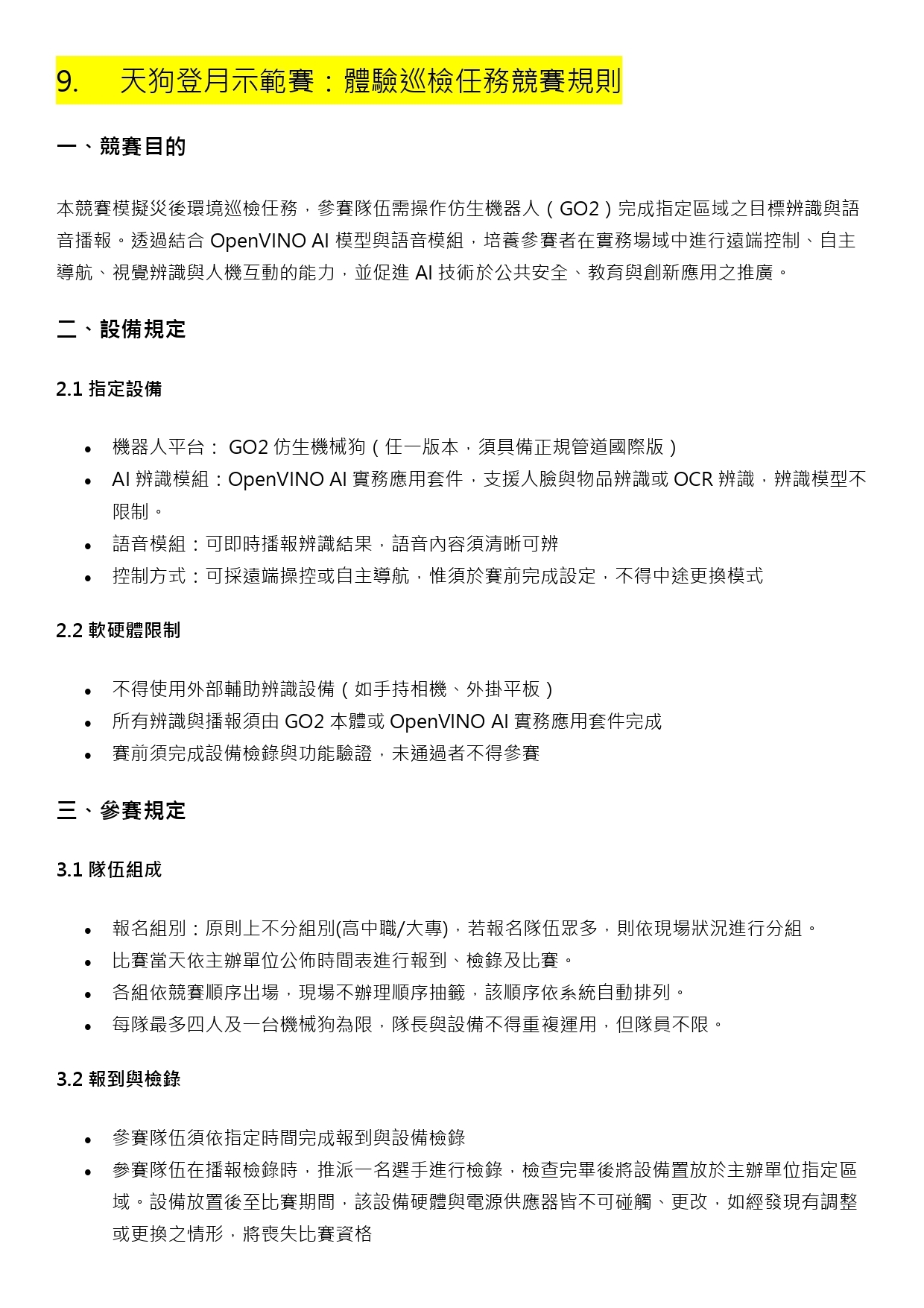 天狗登月示範賽:體驗巡檢任務競賽 規則說明