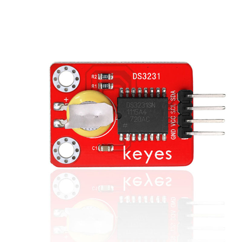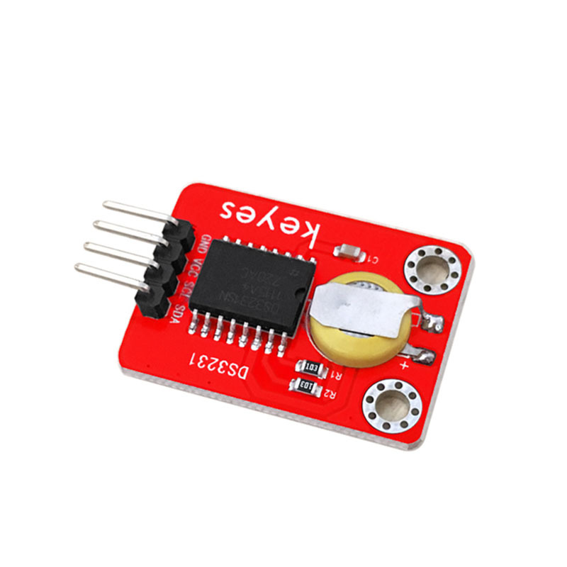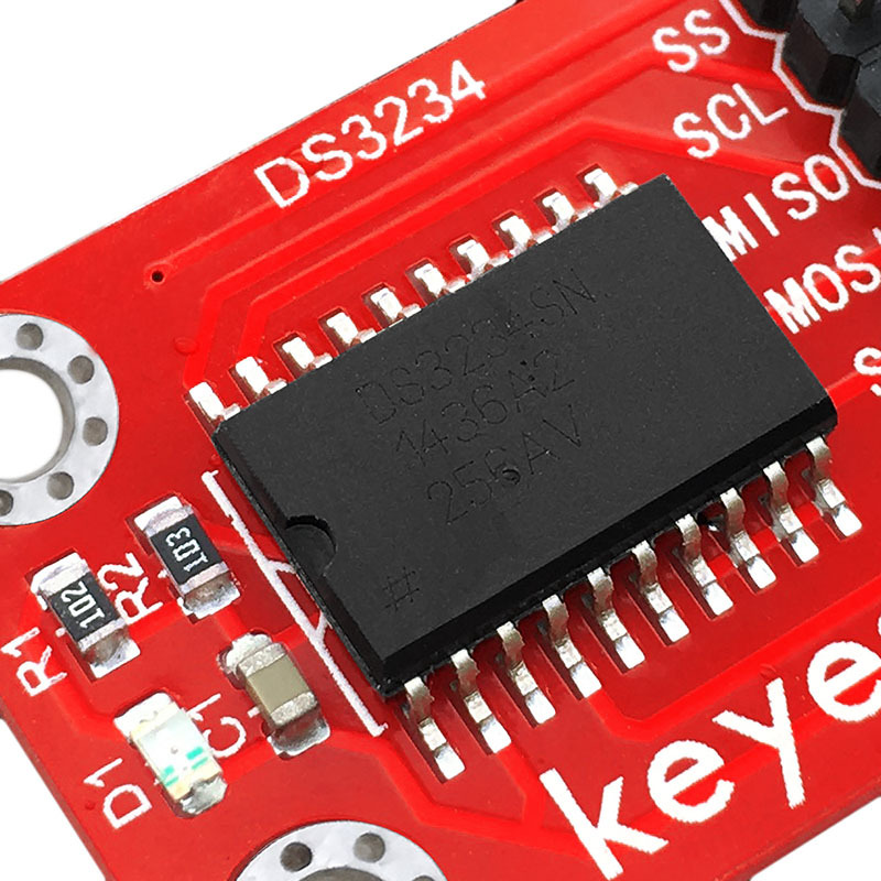 本模組主要用到高精度時鐘晶片DS3231。它是低成本、高精度120即時時鐘(RTC),具有集成的溫補晶振(TCXO)和晶體。