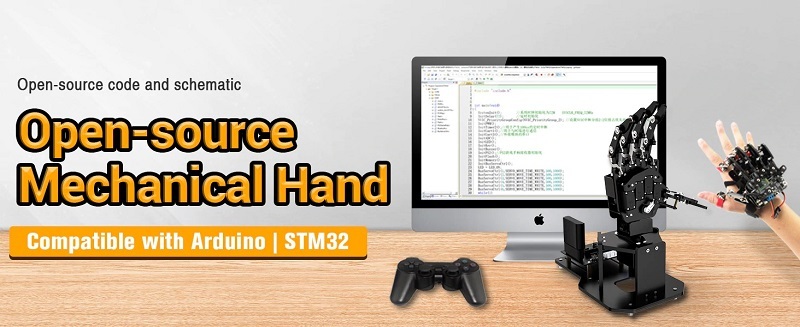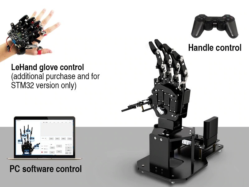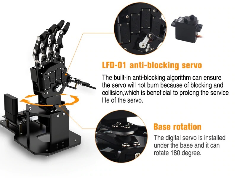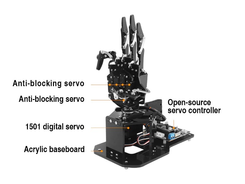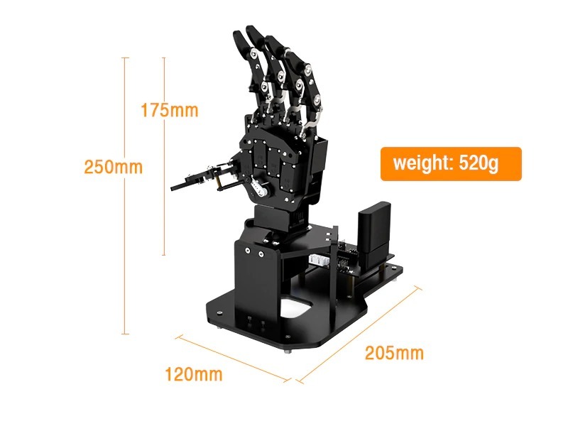 uHand2.0手掌與真人手掌尺寸相同,關節採用防堵轉伺服機,手指動作靈活,可以做出多種仿生動作。