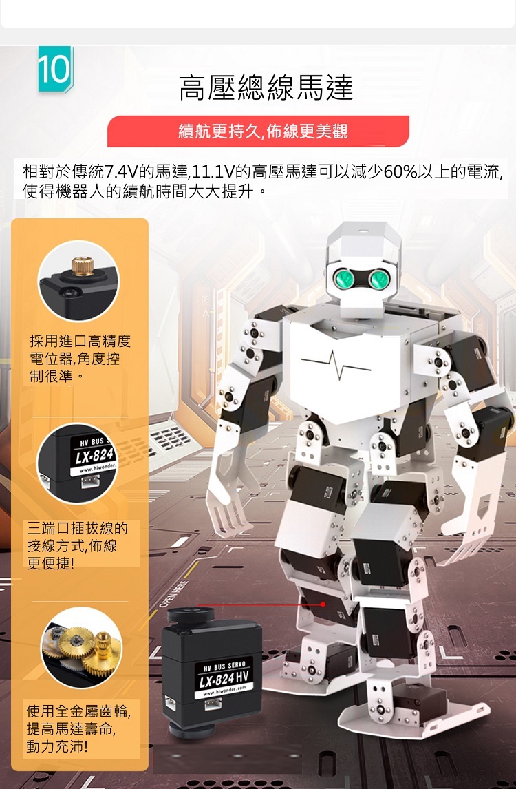 5. 省電高壓伺服馬達,大大提高了機器人的使用壽命。