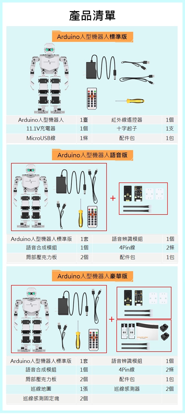 1. 豪華套裝版本、包含AI語音套件、循線套件組