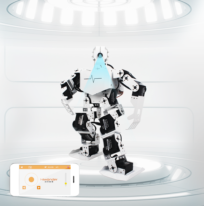 搭載2自由度高清晰度攝像頭,能實現AI圖像識別,顏色識別,自動踢球,視覺巡線等多種智能玩法 。