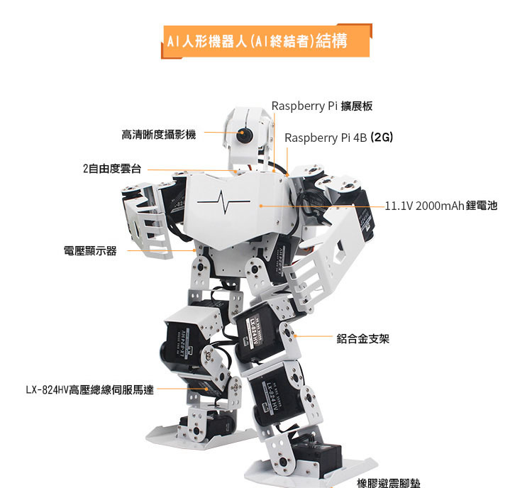 AI人形機器人TonyPi以樹莓派為主控制器,OpenCV為圖像處理庫,採用Python語言編程。