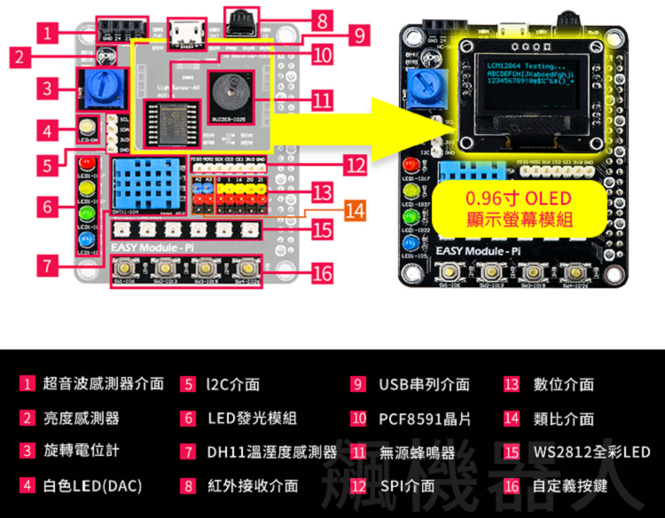Python入門最佳利器不用焊接,不用接線板上整合多功能模組