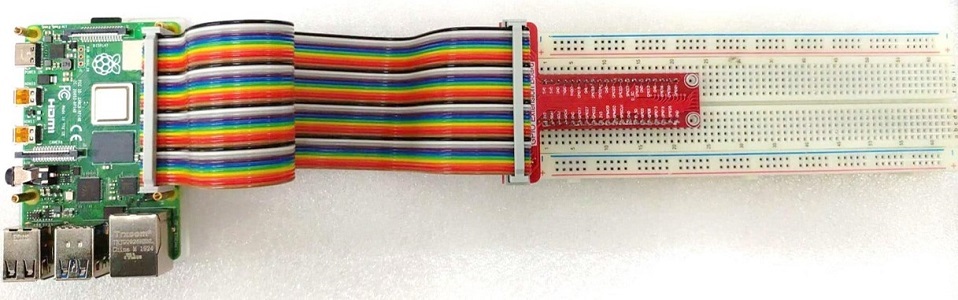 樹莓派專用GPIO 轉接板,帶3.3V/5V 電源,方便使用,2.54mm 間距適用於各種麵包板/ 洞洞板,另附高品質40P 彩虹排線 + 400孔麵包板