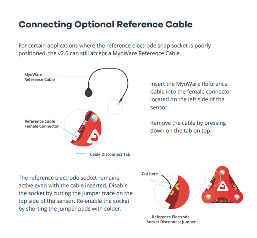 MyoWare® 2.0 傳導線是 MyoWare 2.0 肌肉感測器的延伸線。您只需要將探針插入其外殼,並將生物醫學感應器墊放入電極卡榫。準備就緒後,將參考線的扣子固定在身體的另一部分,例如肘部的骨骼區域或靠近目標肌肉的非鄰近肌肉,這是 MyoWare 2.0 肌肉感測器內建的參考針腳無法觸及的地方注意:即使插入連接線,參考電極插座仍會保持作用。切斷感測器頂端的跳線,停用插座。用焊料短接跳線墊,重新啟用插座。不包括 MyoWare 2.0 肌肉感測器、電源遮斷器和 EMG 墊片。這些都需要另外購買。MyoWare® 2.0 生態系統包含可輕鬆與 MyoWare® 2.0 肌肉感測器連接,這是 Advancer Technologies 推出的低成本、與 Arduino 相容的多合一肌電圖 (EMG) 感測器。創新的連接器系統讓使用者可以輕鬆地將外型小巧的防護罩扣在一起,並連接到微控制器的類比輸入,以量測目標肌肉的原始、濾波及整流電流活動。這樣就不需要在電路板之間進行焊接連接。