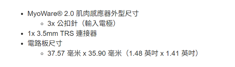 【產品特色】MyoWare® 2.0 肌肉感測器設計為可穿戴式,可讓您直接將生物醫學感測器墊連接到電路板本身。然而,在某些情況下,您仍有一些情況下你可能希望將感測器墊安裝在遠離感測器板的地方;這就是 MyoWare 2.0 Cable Shield 的用武之地。這個擴充板包含一個 3.5mm TRS 插孔,您可以將傳統的三電極感應器纜線連接到此插孔,這樣您就可以測試和使用肌肉感應器,不必將感測器板直接黏貼在身體上的情況下進行測試和使用。MyoWare 2.0 Cable Shield 板上還配備了卡扣式連接器,讓您可以輕鬆疊加使用。與 MyoWare 2.0 生態系統中的其他盾牌不同,此擴充板可卡在 MyoWare 2.0 肌肉感應器的底面。此擴充板適用於安裝在機殼內的非穿戴式專案,或針對太小或位置不適合使用板上電極插座的肌肉。