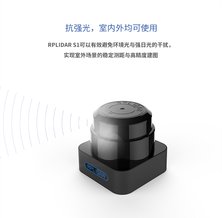 因為TOF測距技術的關係,RPLIDAR S1 在各種室內環境及強烈太陽光直接照射的室外環境下均表現出色。同時RPLIDAR S1 均在出廠前經過了嚴格檢測,確保所發射雷射功率符合IEC-60825 Class 1人眼安全等級。