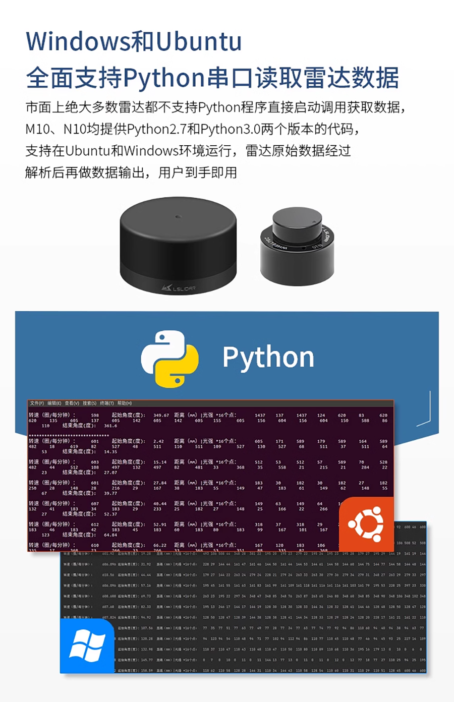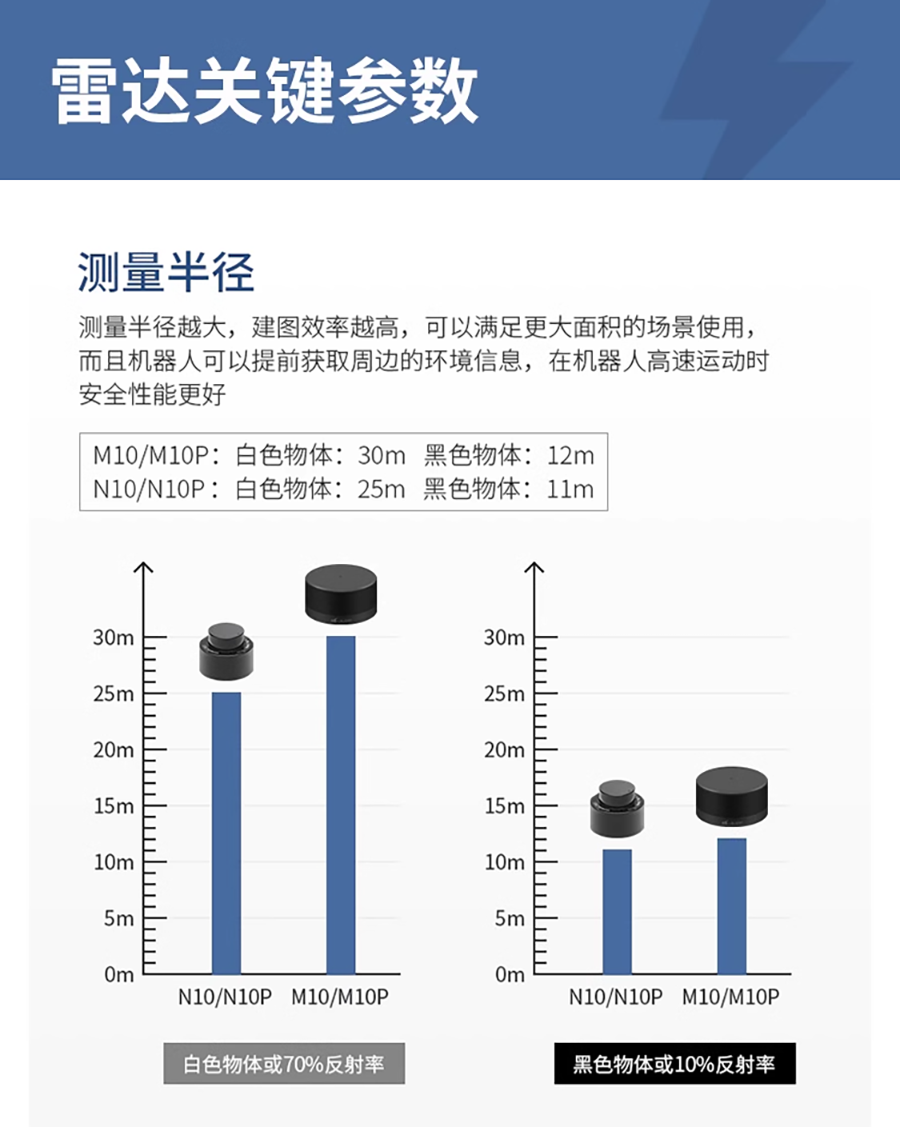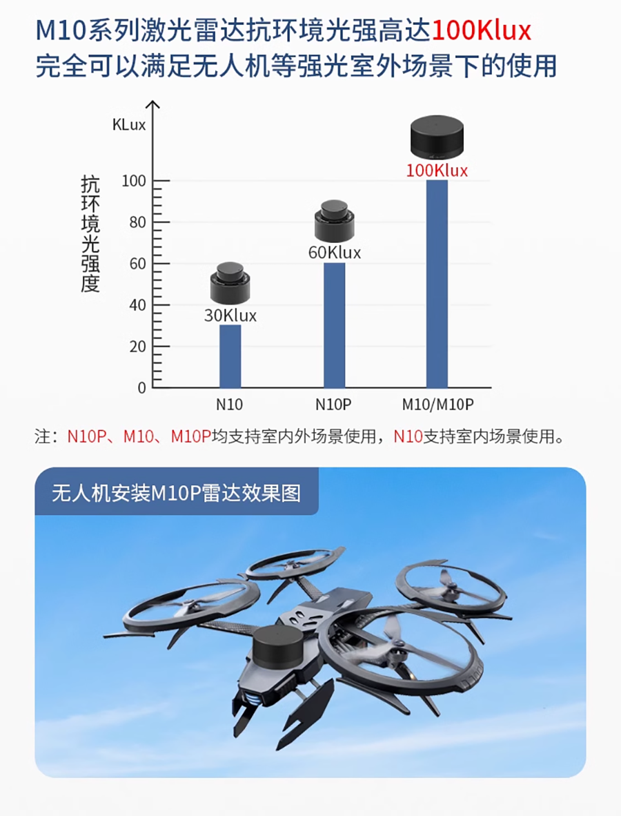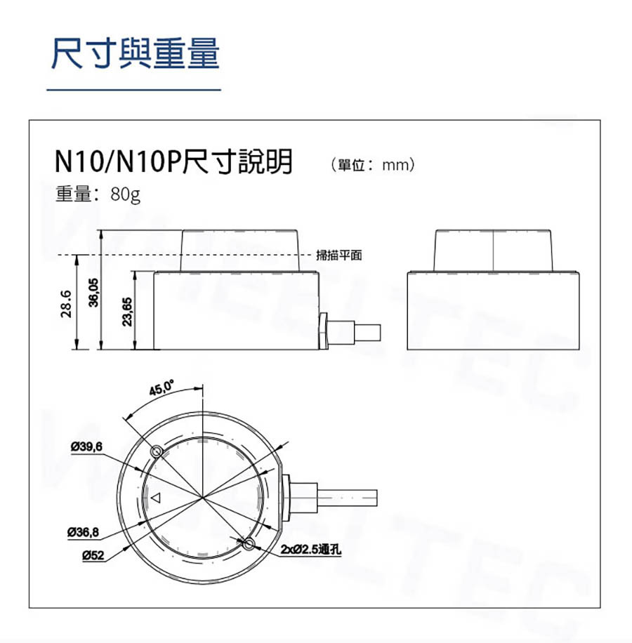 LS LiDAR N10|N10P 光達 採用TOF(飛行時間)原理,能夠對周圍360°環境進行二維掃描檢測。採用無線供電和光通信,測量頻率為6~12Hz。 精度達到±3公分,最大範圍為25公尺。主要應用於室內服務型機器人、掃地機器人、無人機...等精準定位避障應用。