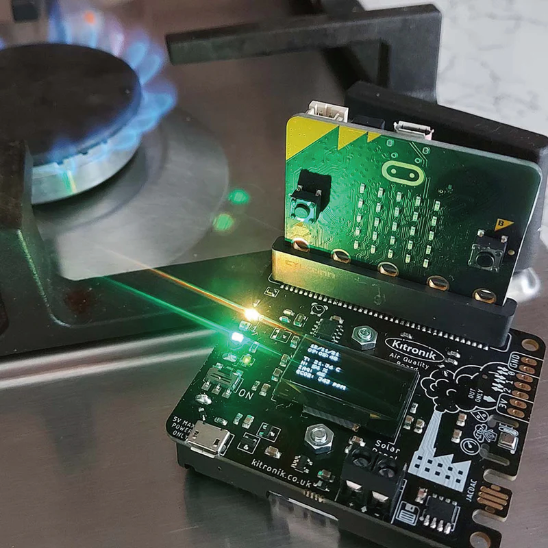 Kitronik 空氣品質板為 BBC micro:bit 提供完整的空氣監測和報告解決方案。豐富的板載感測器和連接點使您能夠收集大量的空氣品質數據,