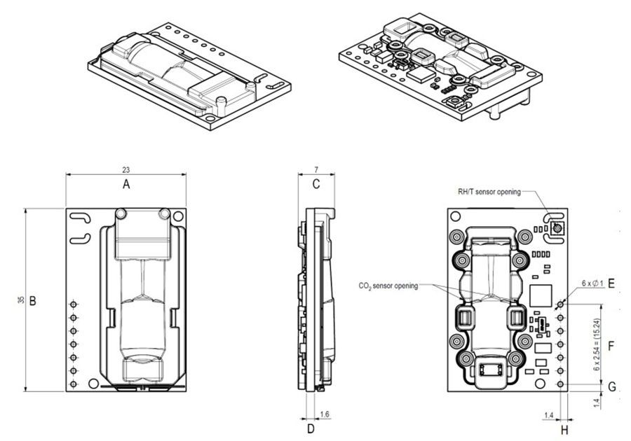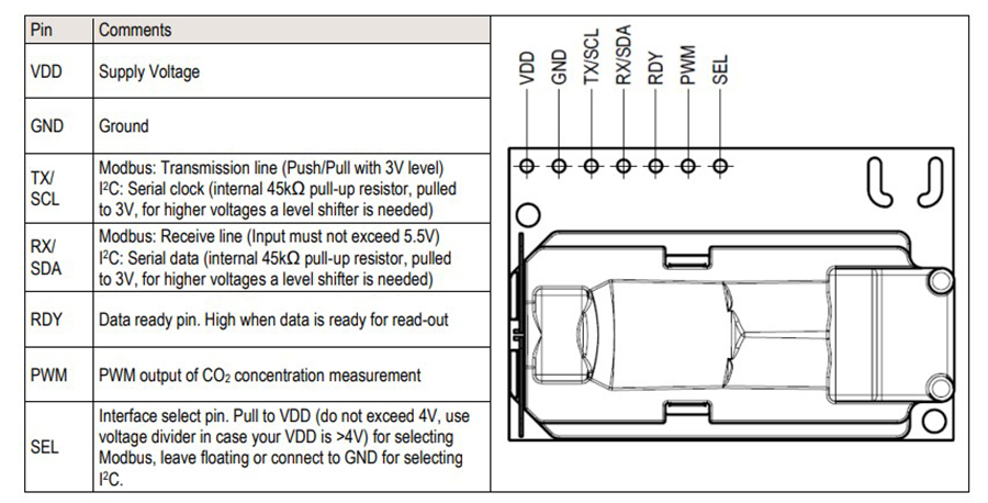 ● 供電電壓:3.3V - 5.5V● NDIR CO₂ 感測技術● 內建溫度與濕度感測器● 最佳性價比● 雙通道偵測,穩定性更佳● 小型化設計:35 mm x 23 mm x 7 mm● 量測範圍:400 ppm – 10,000 ppm● 精確度:±(30 ppm + 3%)● 電流消耗:19 mA @ 每 2 秒量測一次● 能量消耗:120 mJ @ 每次量測● 完全校準並線性化● 數位介面:UART 或 I2C