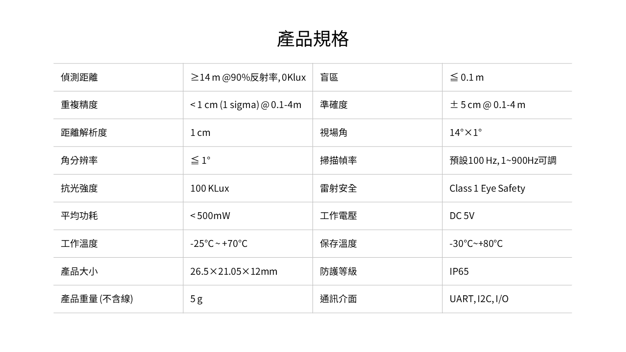 偵測角度:14°x1°