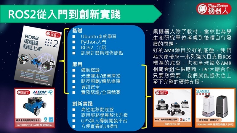 項目 內容 驅動結構 兩驅履帶結構 輪子 金屬履帶輪 尺寸(mm) 270 × 270 × 160 小車自重 2.54 公斤 負載能力 4 公斤 最大速度 1 公尺/秒 輕載續航 速度 0.45 公尺/秒,連續使用 8 小時 負載 1 公斤續航 速度 0.45 公尺/秒,連續使用 6.5 小時 電機 MG513 金屬齒輪減速電機 編碼器 500 線 AB 相高精度 GMR 編碼器 控制方式 PS2 無線手把、CAN、串口等 STM32 主控 STM32F407VET6 光達 A1M8 操作系統 ROS2 Humble、STM32 使用了 FreeRTOS