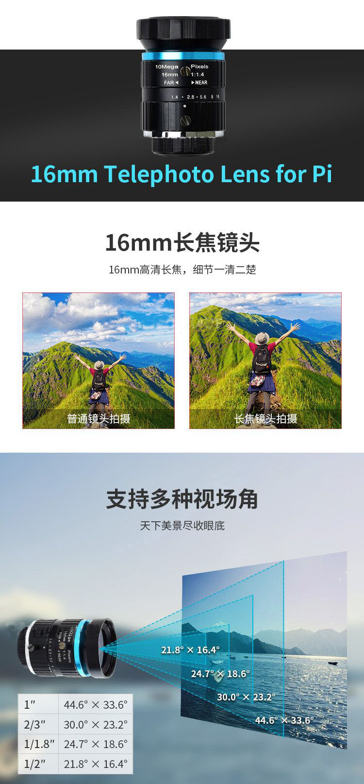 有關啟動和運行相機的指南,包括後焦距調整、三腳架安裝, 將相機連接到Raspberry Pi計算機以及在Raspbian中操作相機、軟體以捕捉圖像,請參閱入門指南。