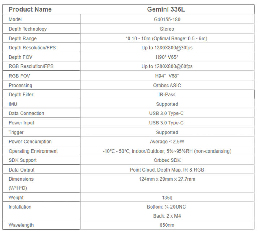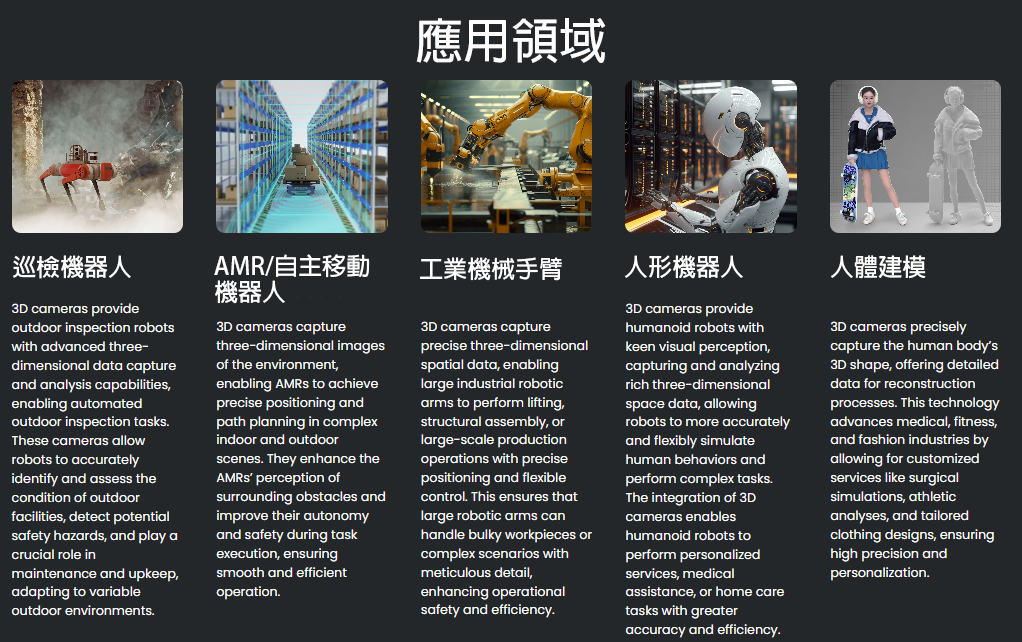 4. 高動態範圍:在不同光照條件下提供清晰深度圖像。
