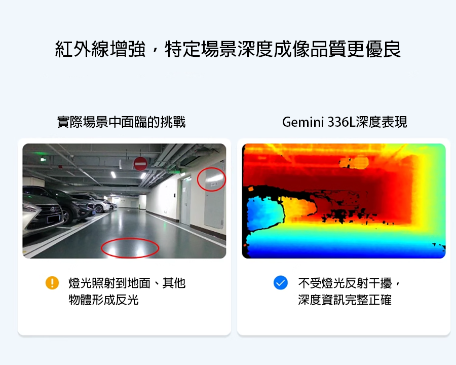 2. 可見光過濾:在強光環境下提供穩定的深度數據。