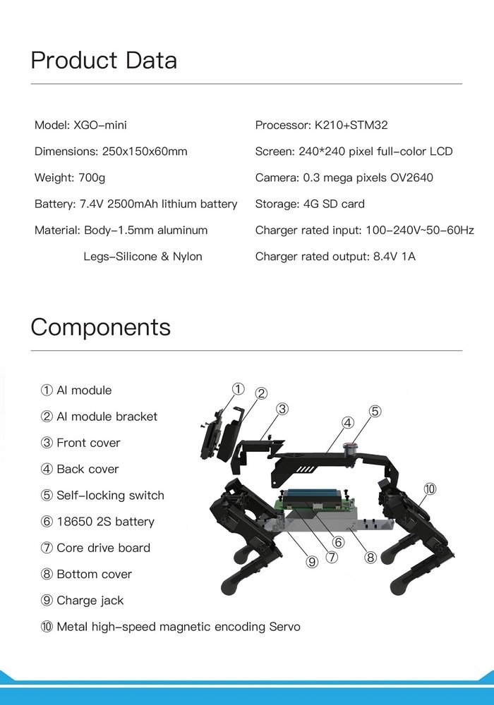 XGO-Mini是一款桌面大小的AI四足機器人,擁有12個自由度 ,可實現全方位運動、六維姿態控制、姿態穩定、多種運動。專為教育、研究、算法驗證和娛樂而設計。