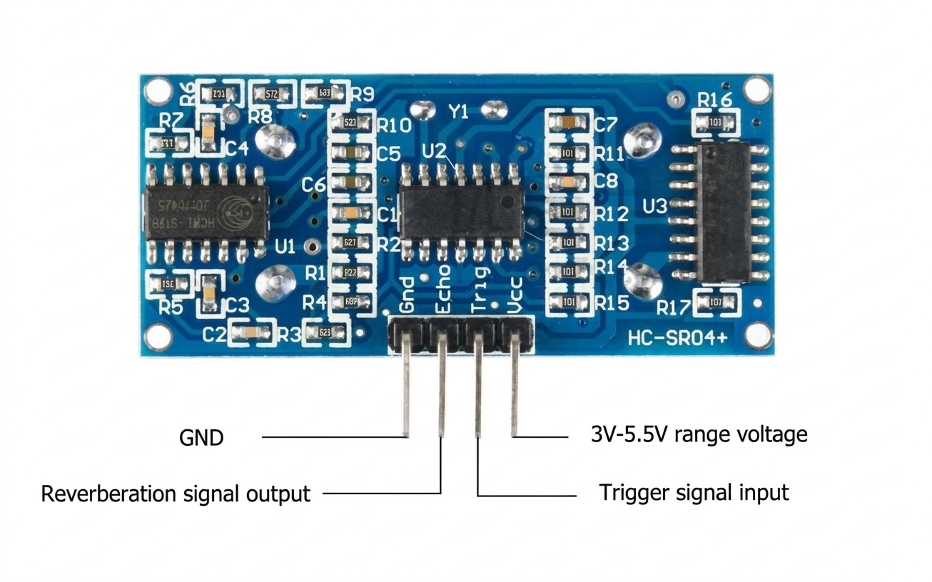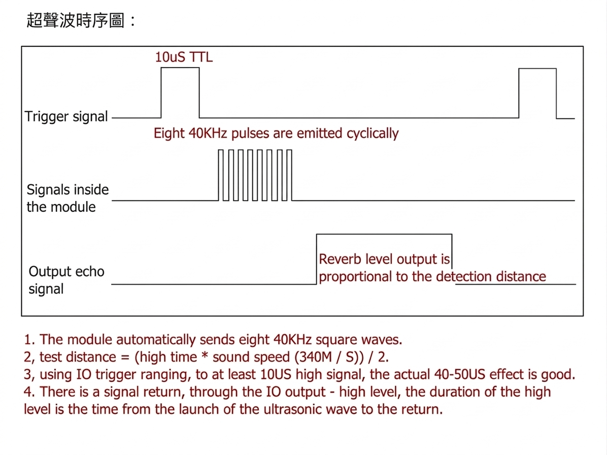 HC-SR04+是一款寬電壓操作超音波測距模組,該模組的外部尺寸和軟體與HC-SR04的舊版本完全相容。可以使用HC-SR04的舊版本無縫切換。低至3V的最低工作電壓使其與3.3V供電的MCU可直接連接。